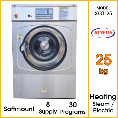 - Công suất : 25kg / lần giặt (tùy theo cài đặt và thời gian hoạt động công suất ngày có thể đến 200kg-300kg đồ)