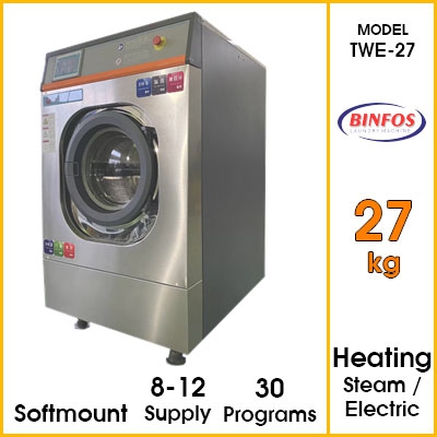 - Công suất : 27kg / lần giặt (tùy theo cài đặt và thời gian hoạt động công suất ngày có thể đến 270kg-400kg đồ)