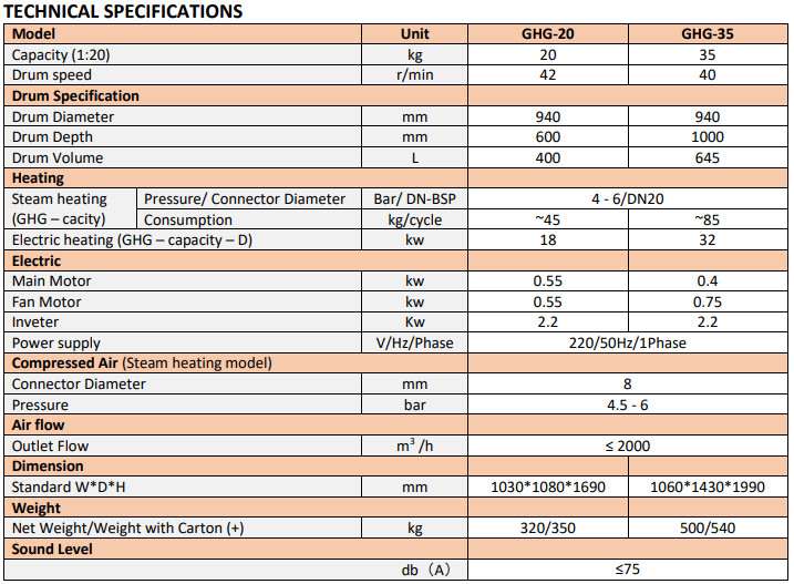 • Lớp cách nhiệt được thêm vào trên hình trụ bên ngoài của máy để cải thiện hiệu quả sấy trong khi giảm tiêu thụ năng lượng;
